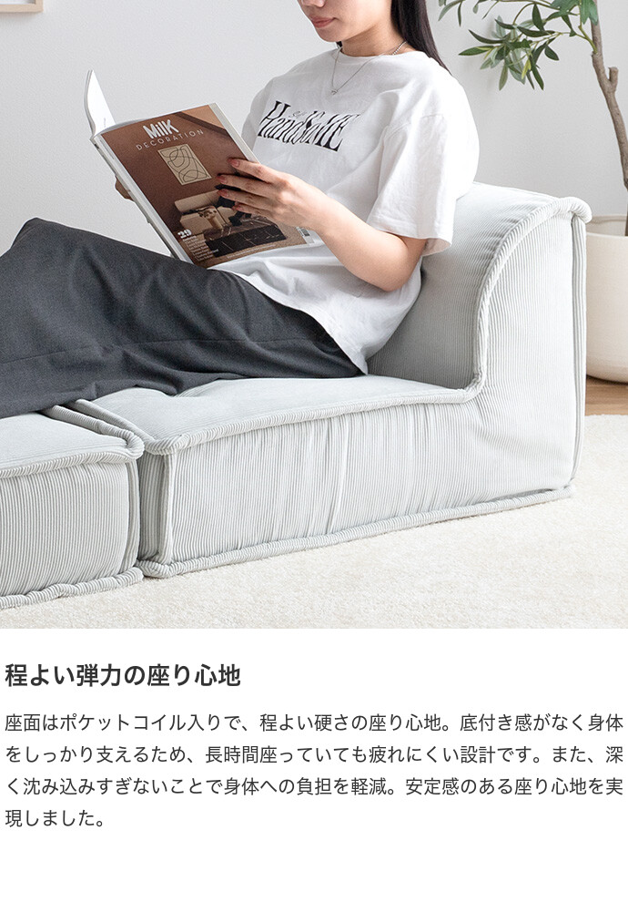 ソファ 2人掛け フロア ロー コーデュロイ コンパクト 低め 2P 二人用 セット 組み合わせ L字 左右対応 リビング ダイニング ごろ寝 幅152 連結 セパレート