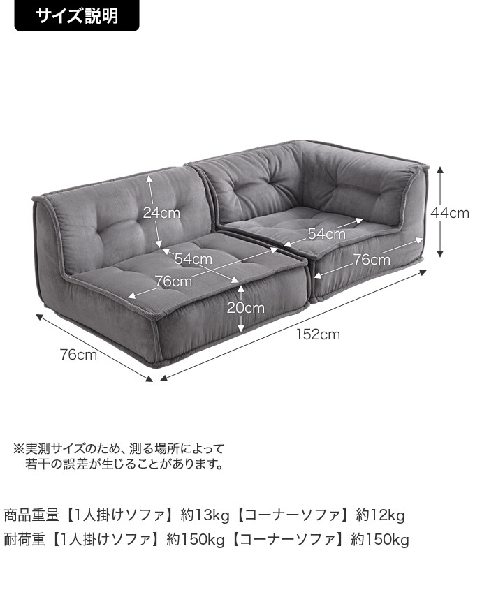 【商品重量】1人掛けソファ:約13kg、コーナーソファ:約12kg