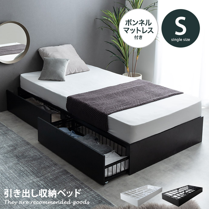 【ボンネルコイルマットレス付き 】シングルベッド ベッド シングル サイズ パイプベッド ベッドフレーム ベット フレーム すのこ型 メッシュ 引き出し