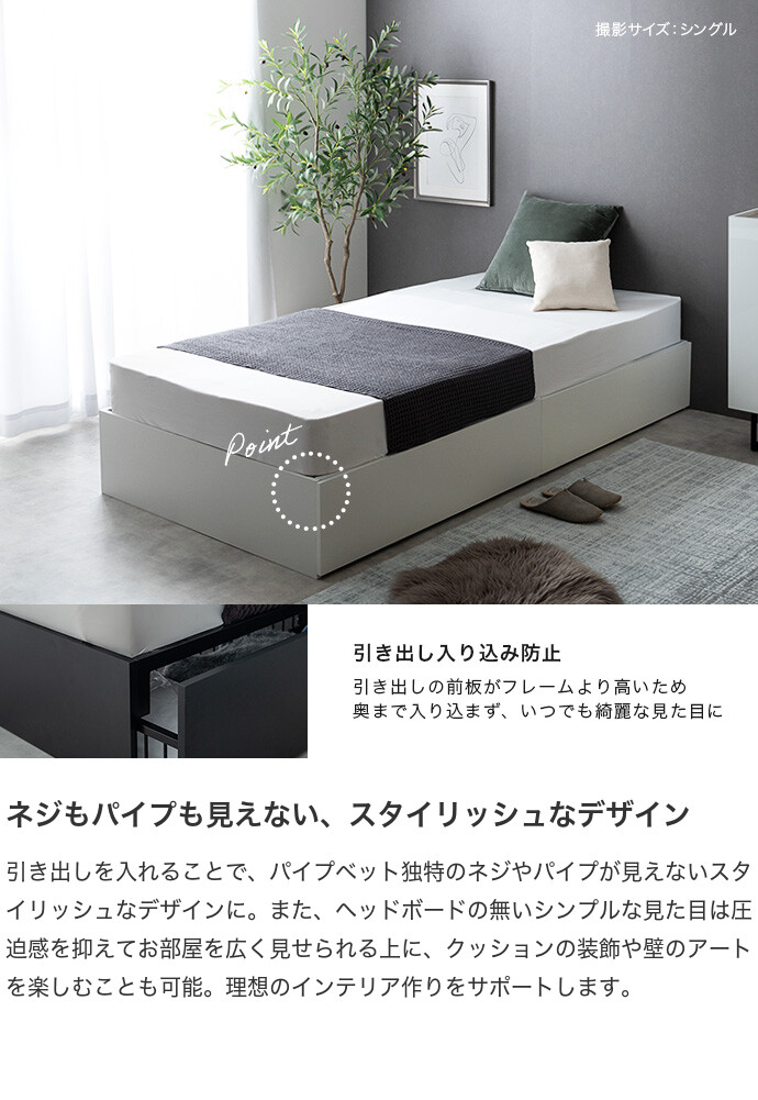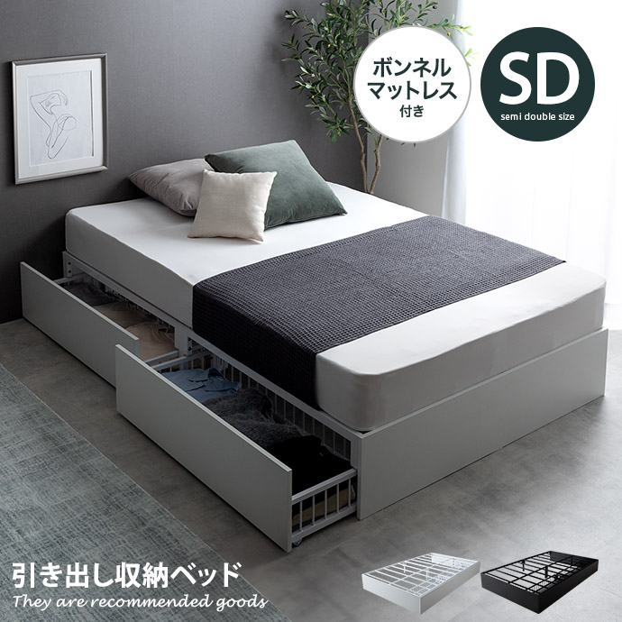 【ボンネルコイルマットレス付き 】セミダブルベッド ベッド セミダブル サイズ パイプベッド ベッドフレーム ベット フレーム すのこ型 メッシュ 引き出し