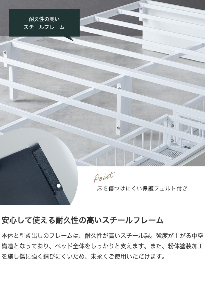 【耐荷重】床板:約120kg、引き出し:約5kg
