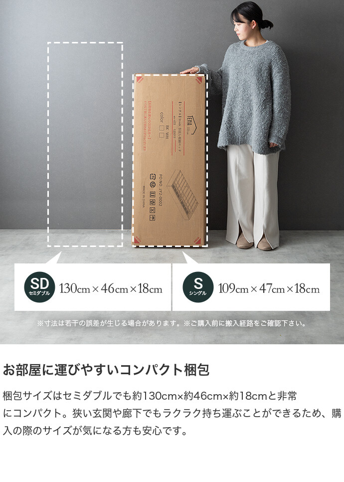 ※マットレスとフレーム枠のサイズについては、誤差が出る場合がございます。予めご了承下さいませ。
