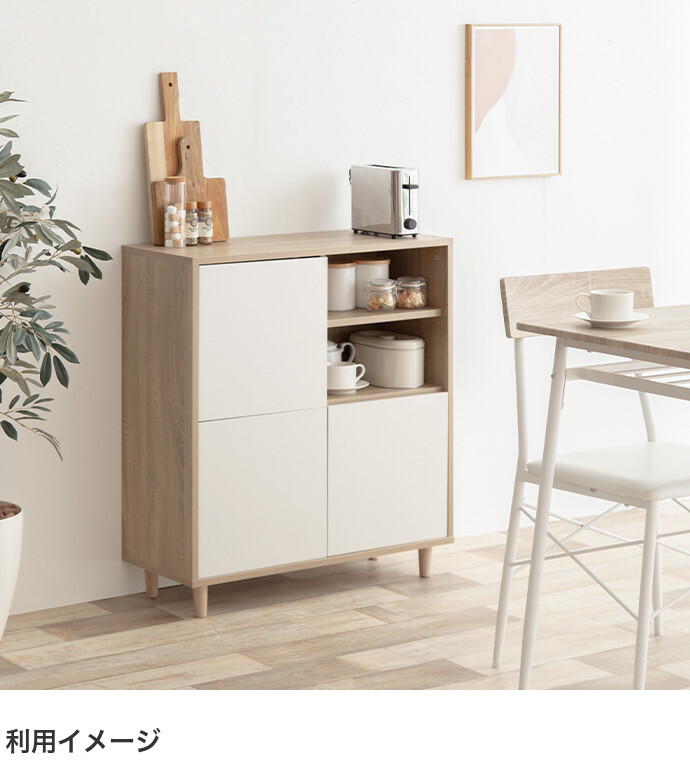 キャビネット チェスト ラック 収納 棚 食器棚 本棚 テレビ台 ロータイプ コンパクト 大容量 扉収納 可動棚 バイカラー スリム 棚付き プッシュ扉 幅73