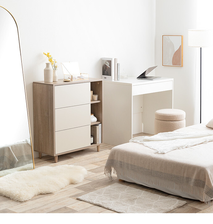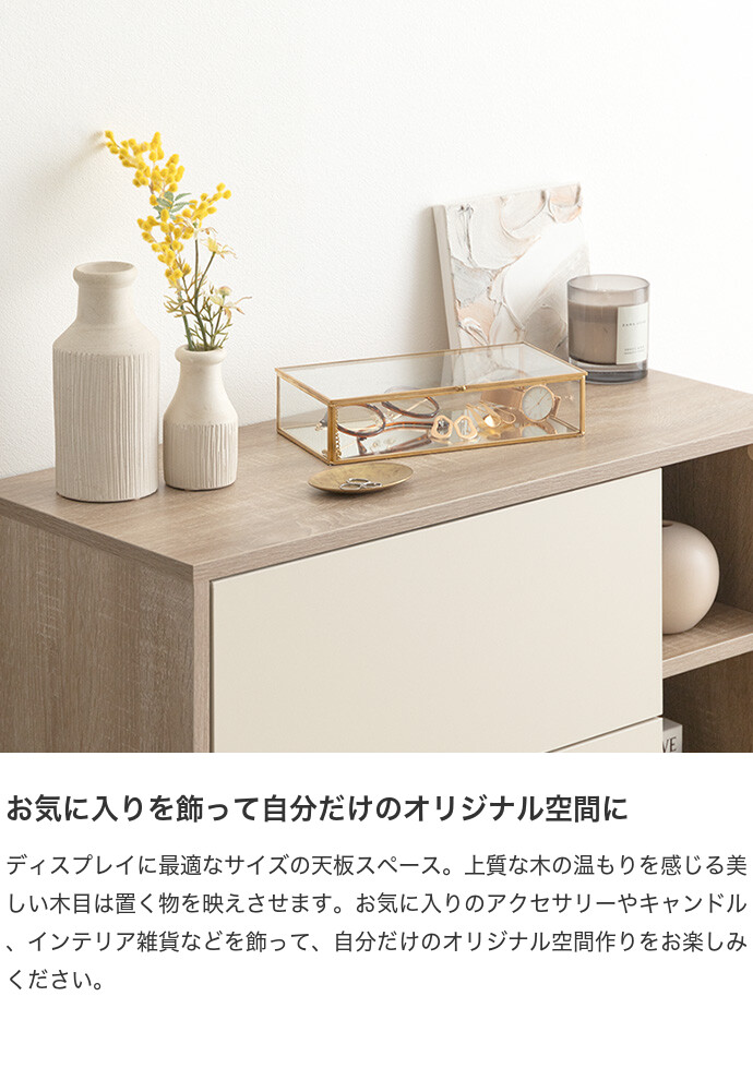 【耐荷重】天板:約10kg、引き出し:約3kg、可動棚:約2kg、オープン収納底板:約4kg