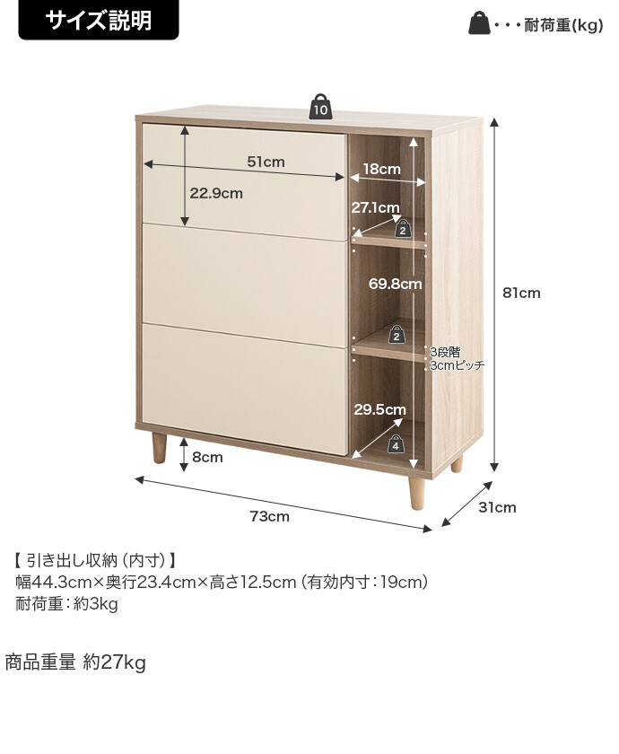 ■サイズ:幅73cm×奥行31cm×高さ81cm