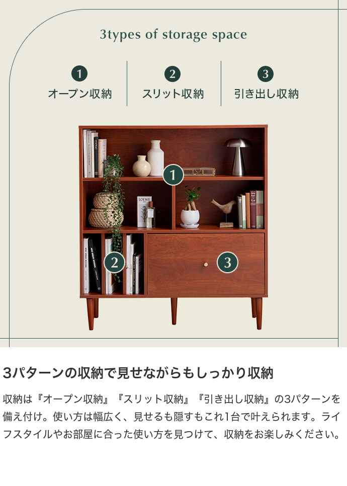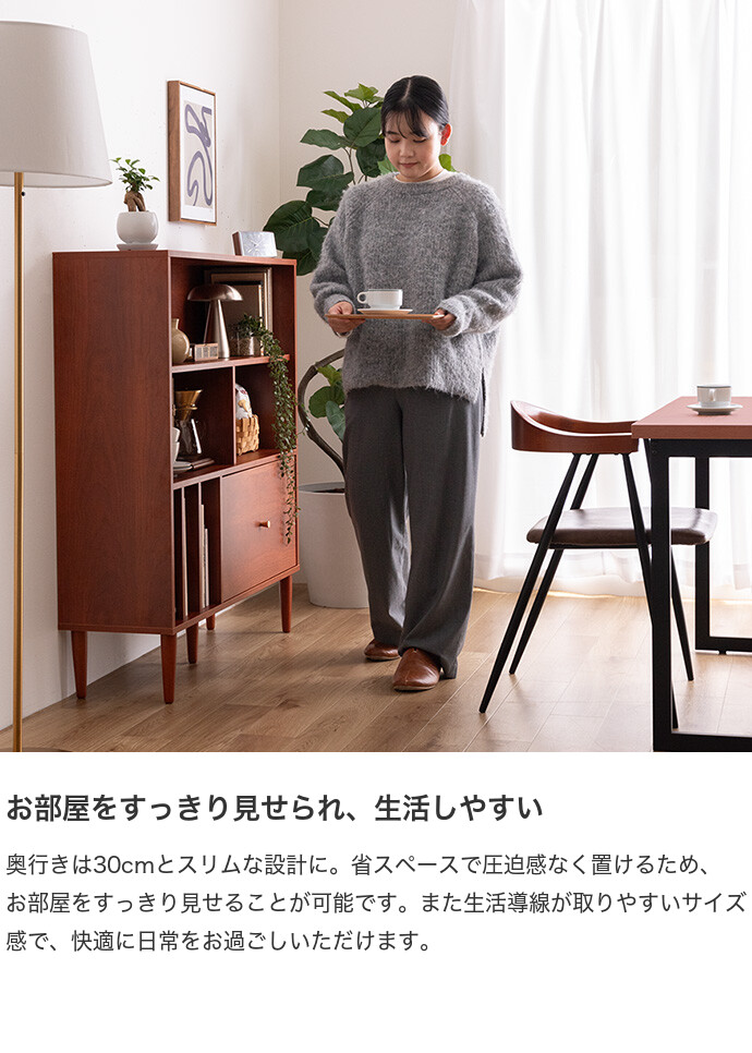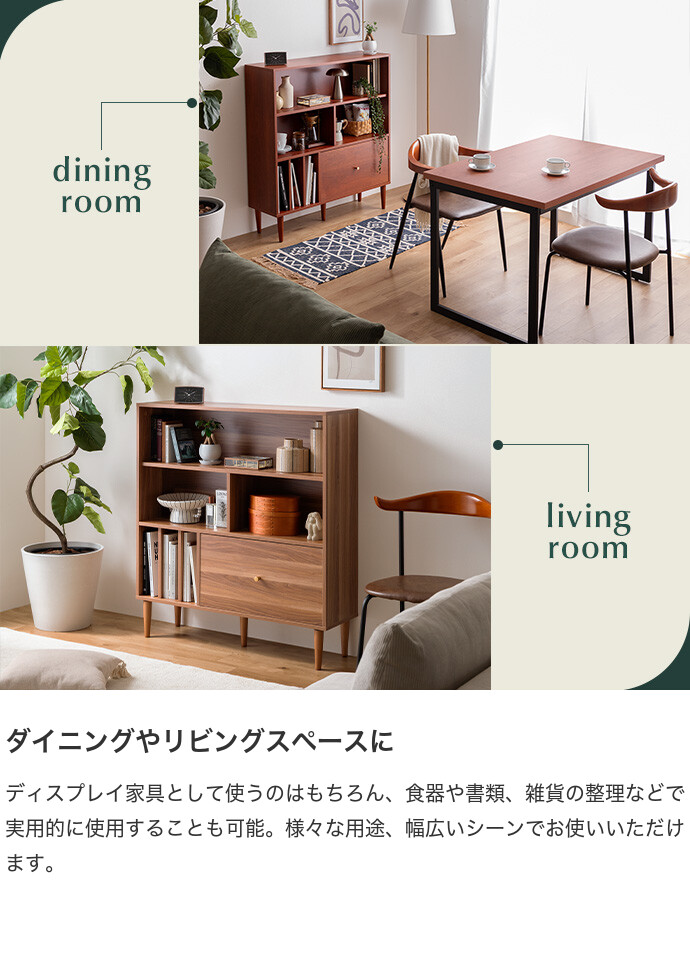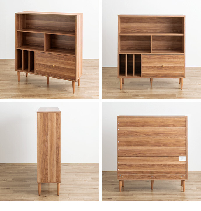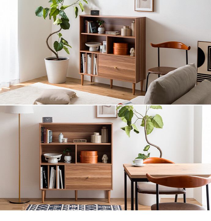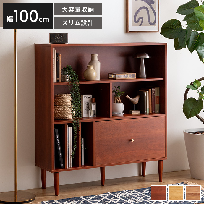 本棚 収納 シェルフ ラック チェスト オープン リビング キッチン 食器 ブック 洋服 木製 木目調 ディスプレイ スリム 引き出し ワンルーム 一人暮らし