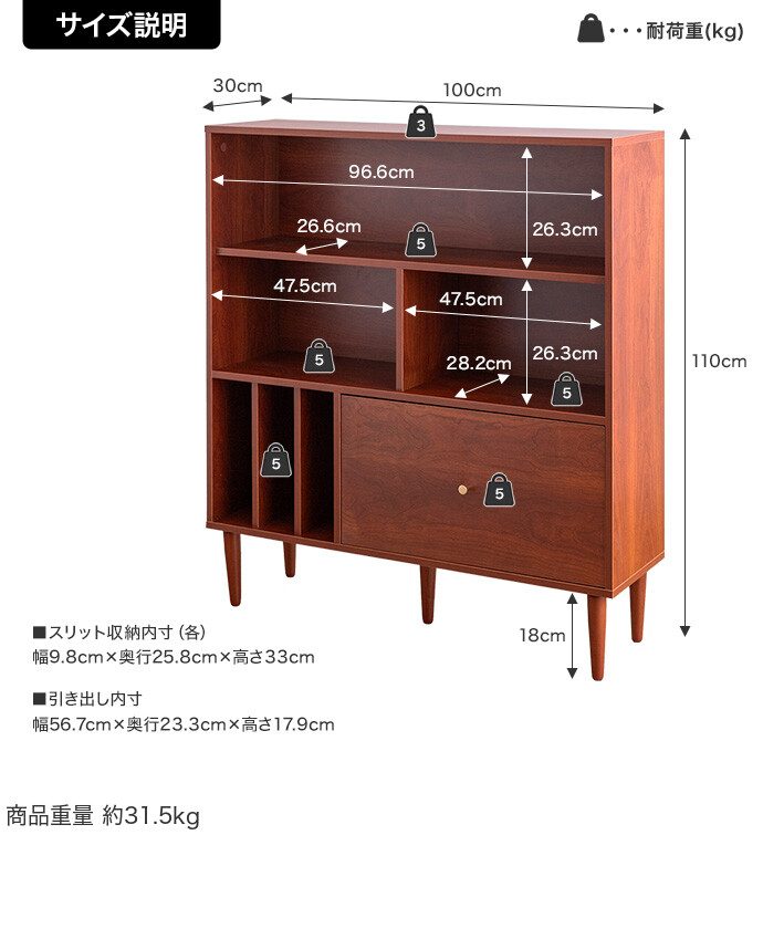 ■サイズ:幅100cm×奥行30cm×高さ110cm
