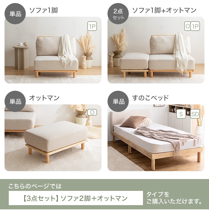 【耐荷重】ソファ:約80kg(1脚あたり)、オットマン:約80kg
