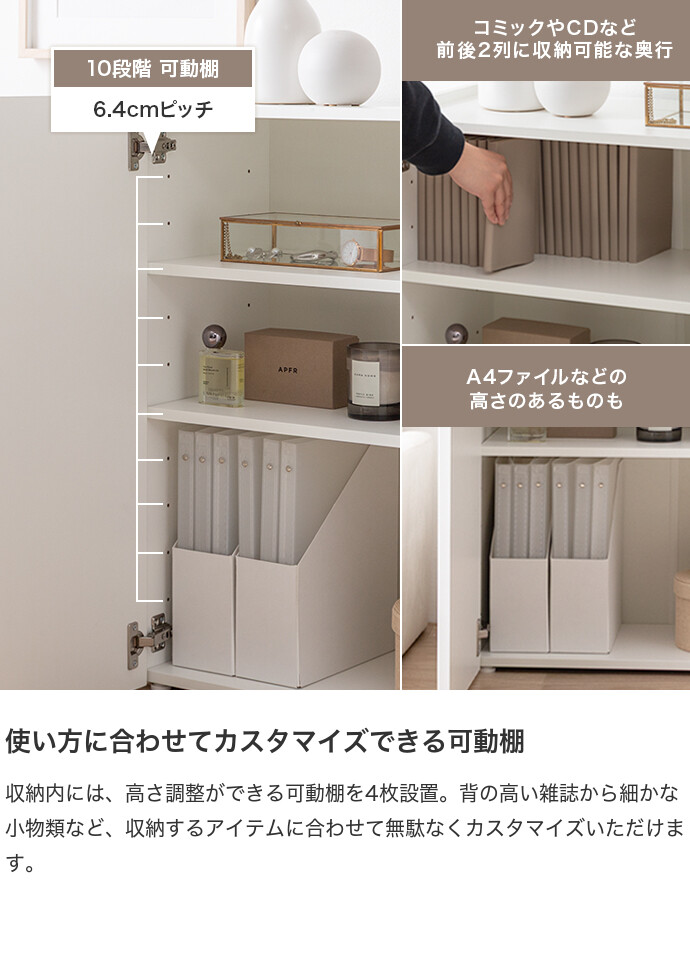 キャビネット 本棚 チェスト サイドボード シェルフ ブックシェルフ ディスプレイ 収納 扉 棚 可動棚 扉収納 大容量 スリム 省スペース かわいい