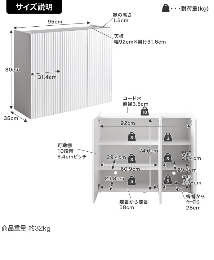 ■サイズ:幅95cm×奥行35cm×高さ80cm