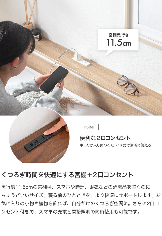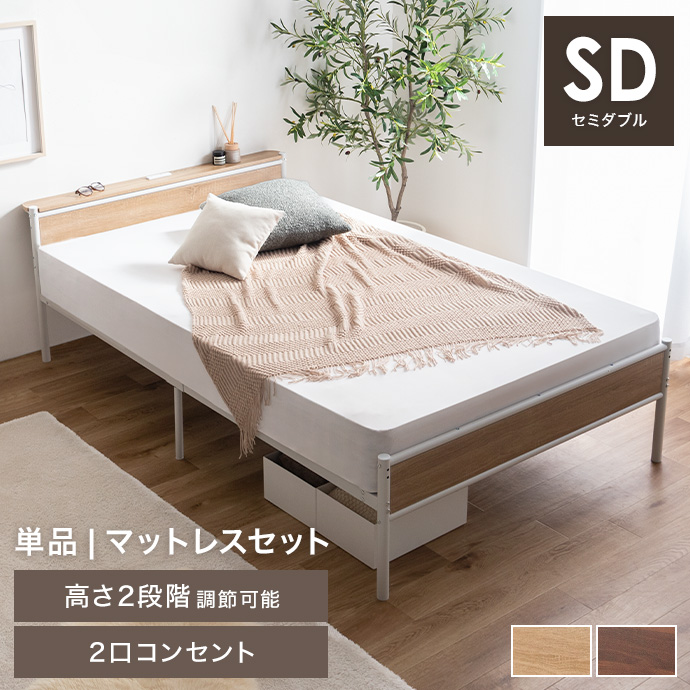 【フレームのみ 】セミダブルベッド パイプ ローベッド フレーム マットレス付き ヘッドボード 宮棚 コンセント ベッド下収納 コンパクト かわいい