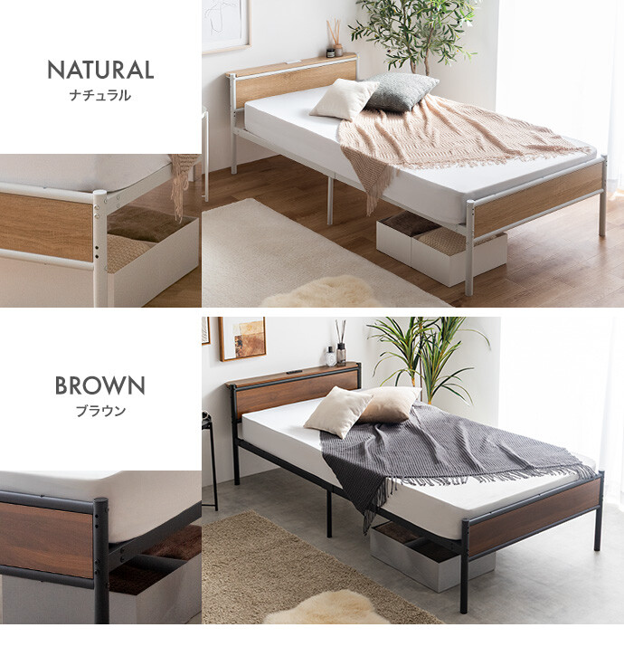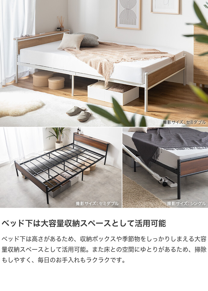 【ボンネルコイルマットレス付き 】シングルベッド パイプ ローベッド フレーム マットレス付き ヘッドボード 宮棚 コンセント ベッド下収納 コンパクト