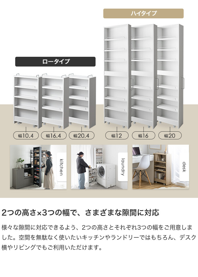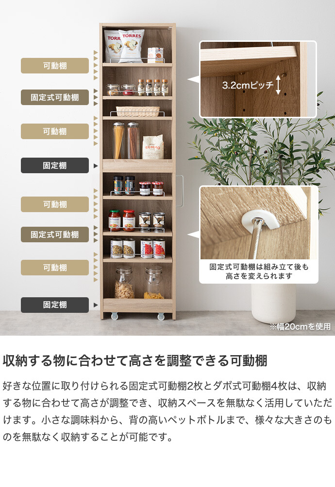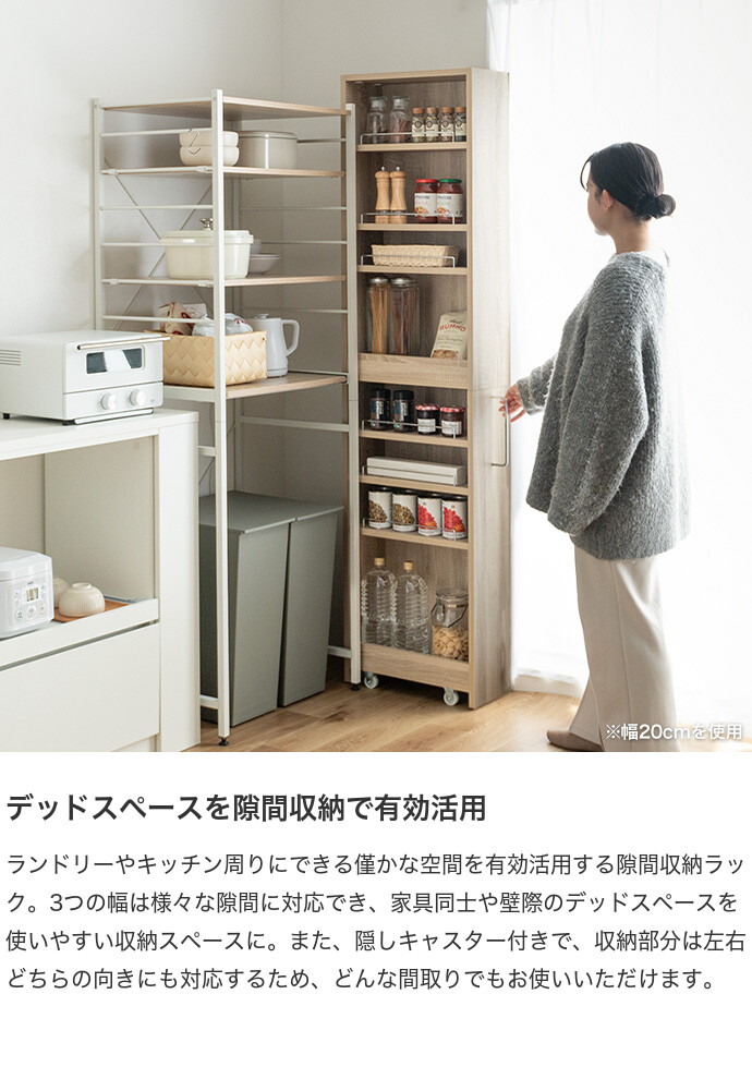 隙間収納ラック すき間収納ラック ハイタイプ 20cm キャスター付き キッチン収納 棚 隙間ラック すきま収納 隙間ストッカー スリムラック キッチンワゴン