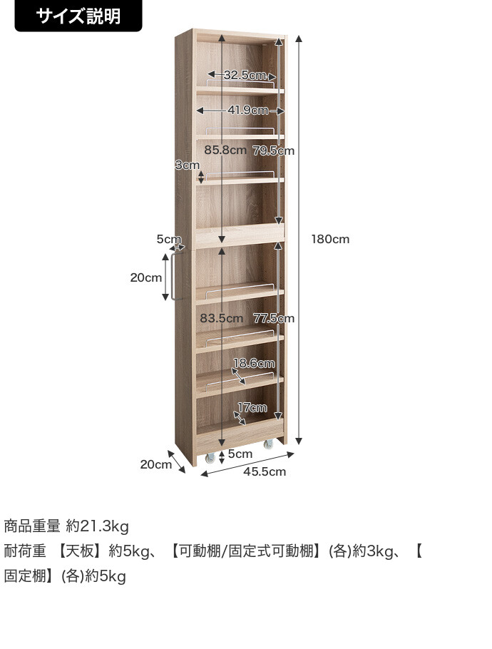 ■サイズ:幅20cm×奥行45.5cm×高さ180cm