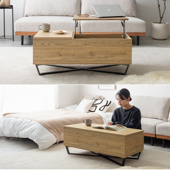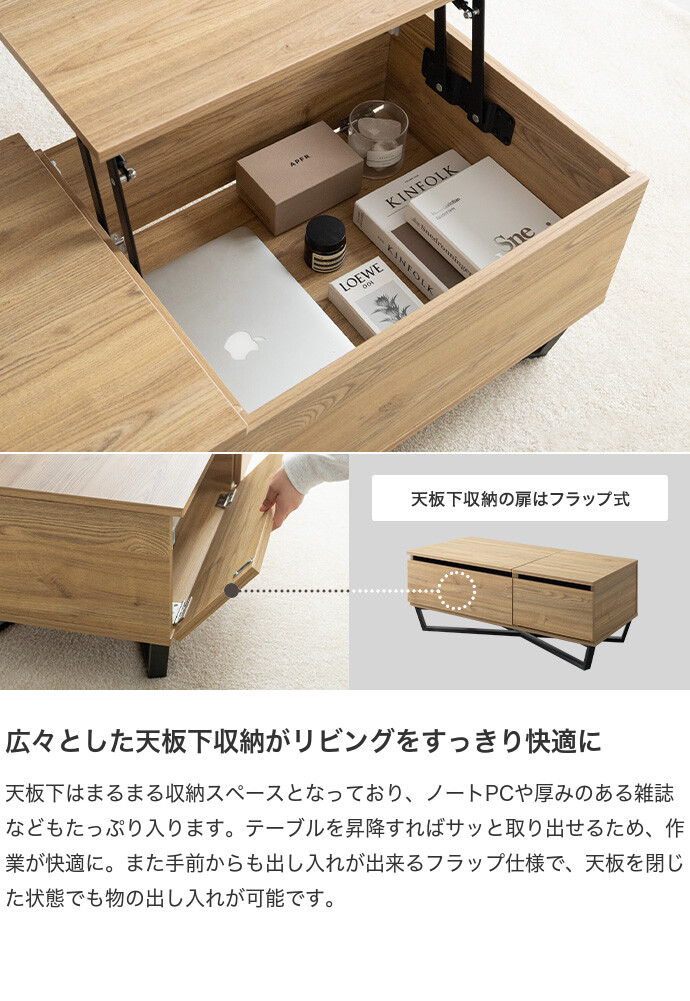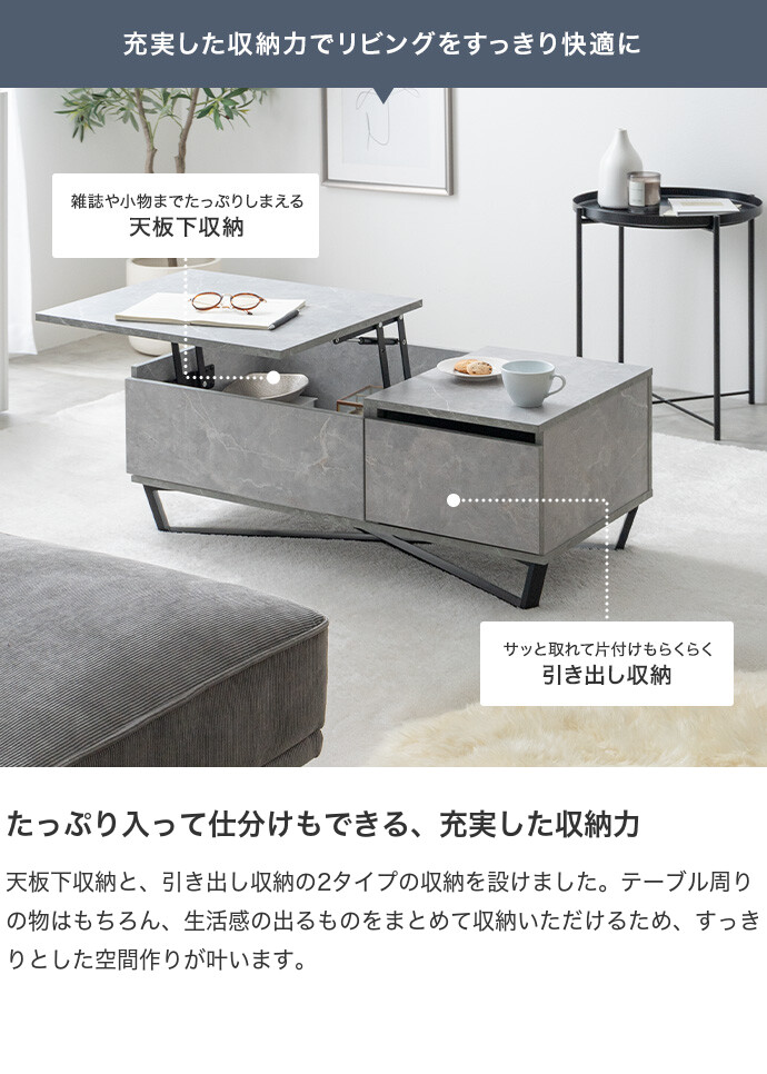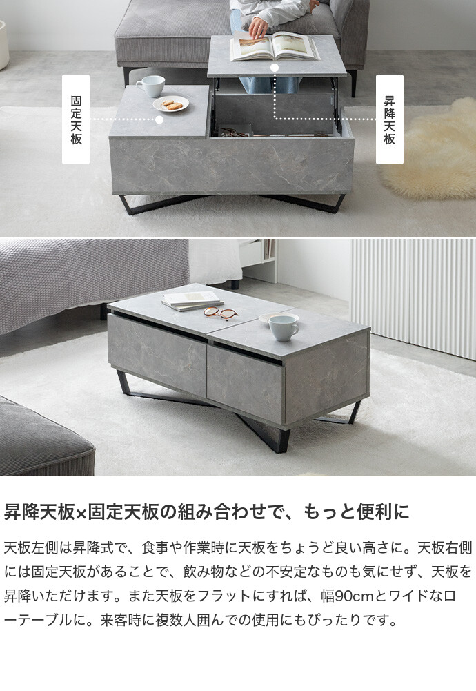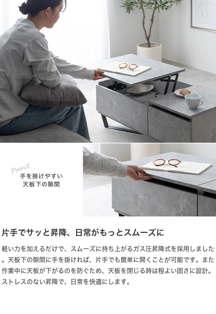 昇降テーブル 昇降式テーブル リフティングテーブル センターテーブル ローテーブル 収納 高さ調節 ガス圧 昇降式 可動 ソファ前 作業台 引き出し リビング