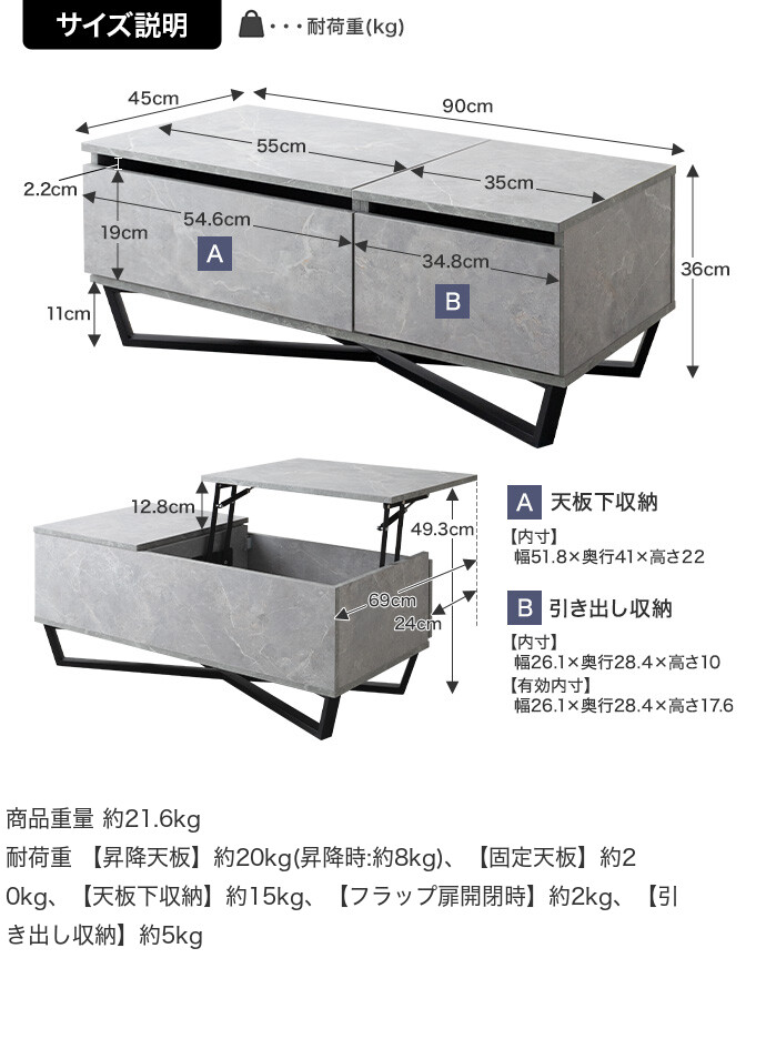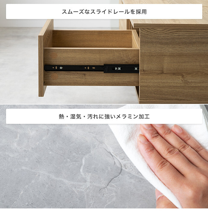 【耐荷重】昇降天板:約20kg(昇降時:約8kg)、固定天板:約20kg、天板下収納:約15kg
