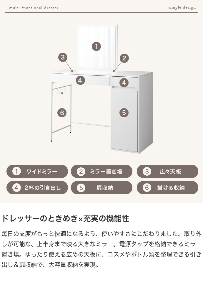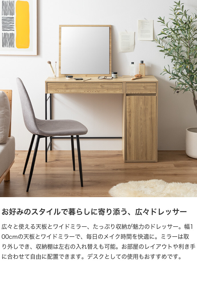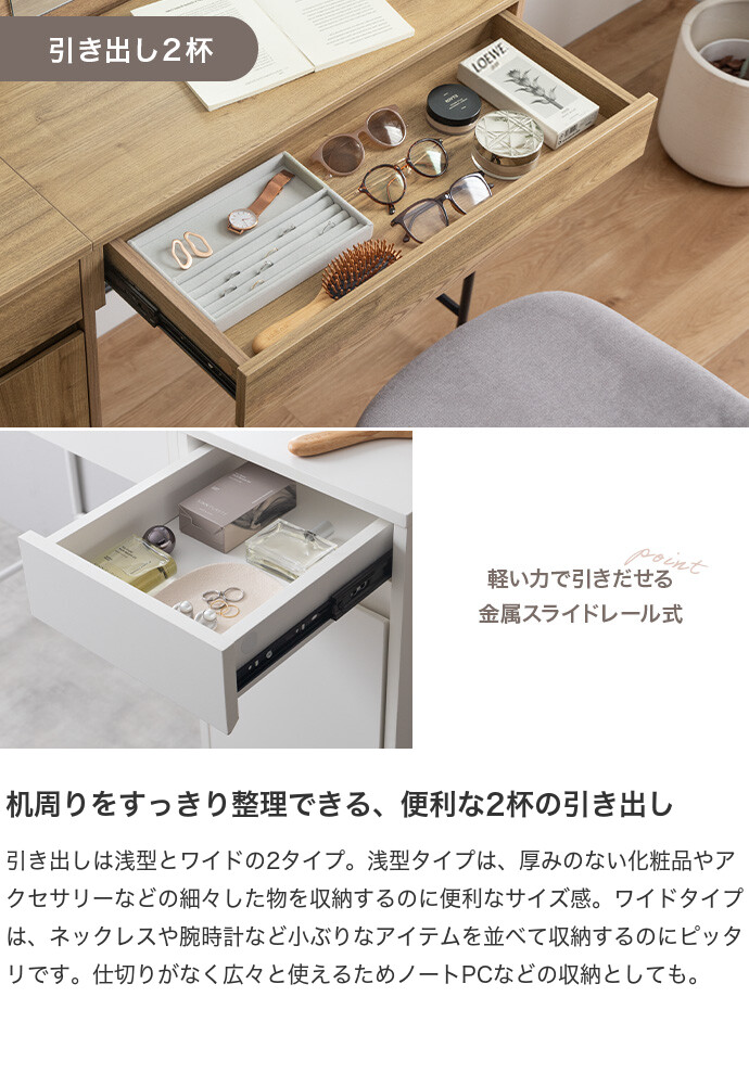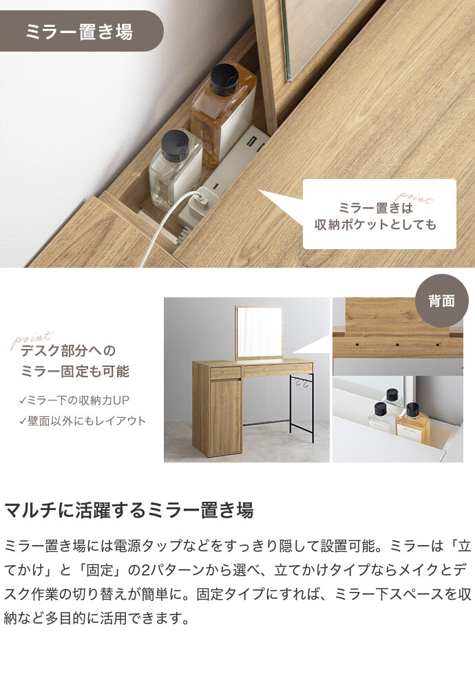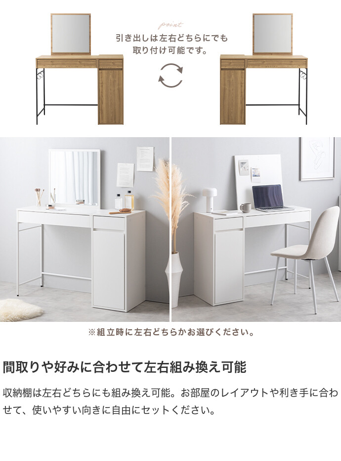 ドレッサー デスク テーブル ドレッサーデスク ドレッサーテーブル コンパクト 化粧台 鏡台 一面鏡ドレッサー パソコンデスク 机 収納 引き出し 扉収納