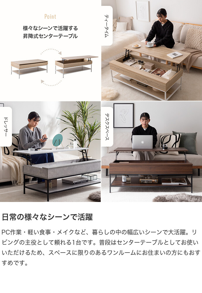 センターテーブル 昇降式テーブル テーブル 机 デスク パソコンデスク 昇降デスク リビングテーブル 昇降テーブル リフトアップ リフティング