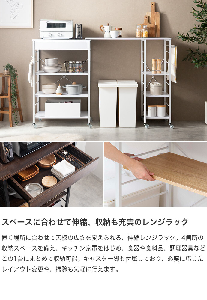 レンジ台 伸縮 レンジラック レンジボード カウンター キッチン収納 キッチンラック キッチンボード アイランド ラック シェルフ 間仕切り 食器棚 棚