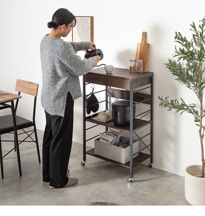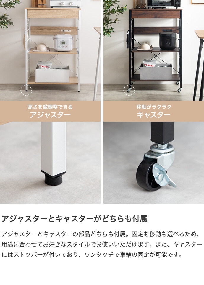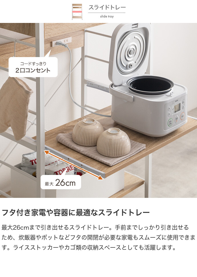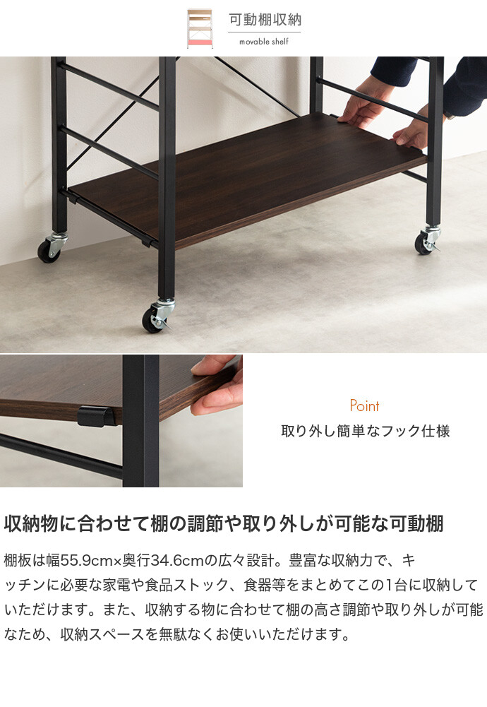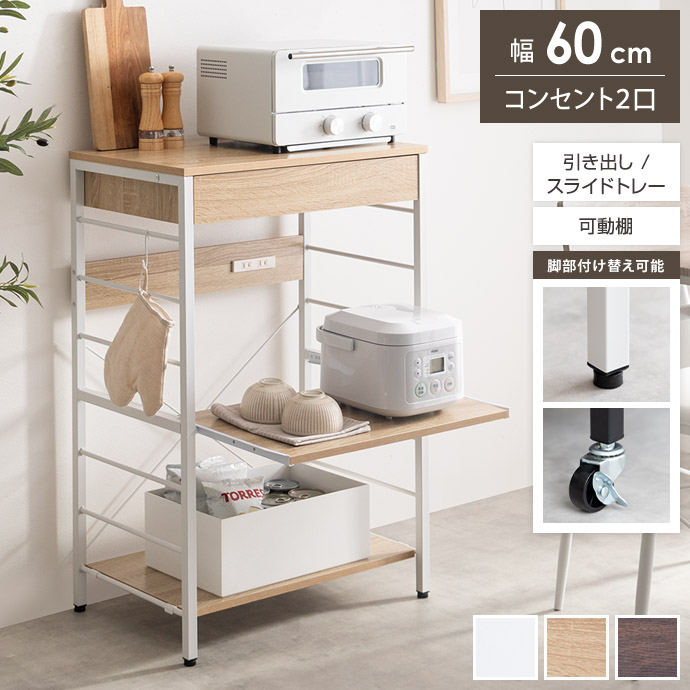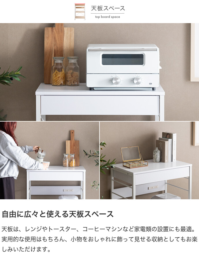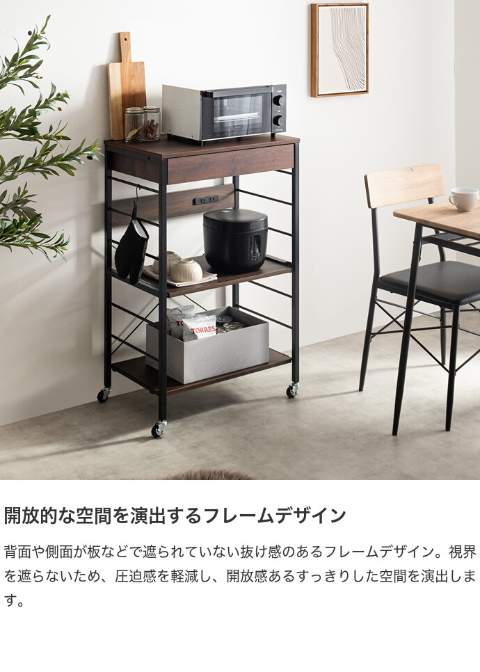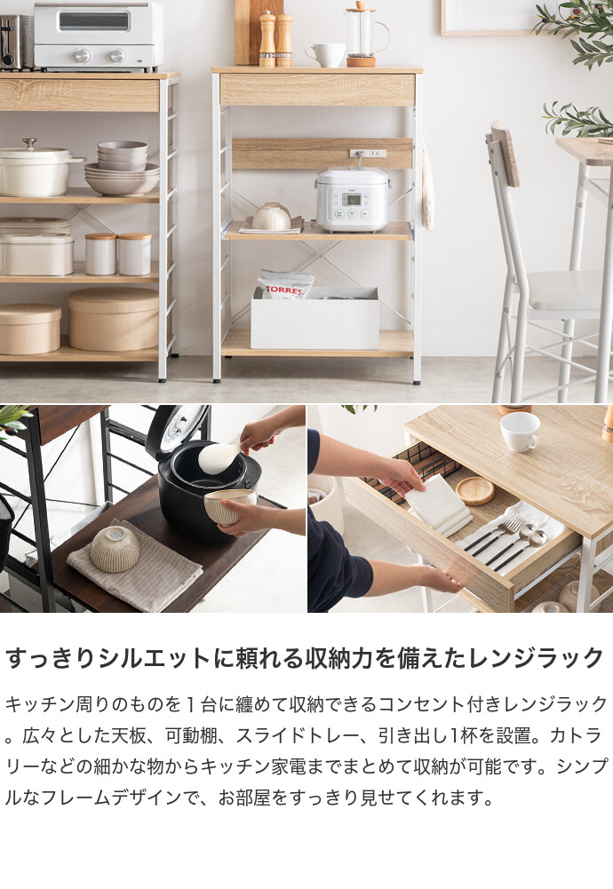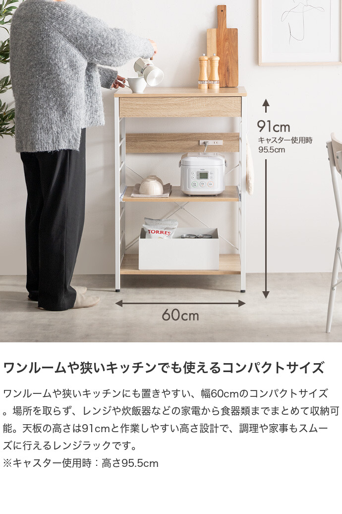レンジ台 レンジラック キッチン収納 キッチンラック キッチンボード ラック シェルフ 棚 ワゴン キャスター付き コンセント付き 2口 コンパクト