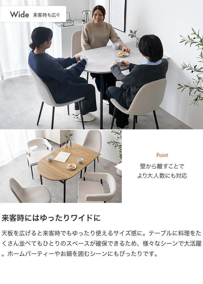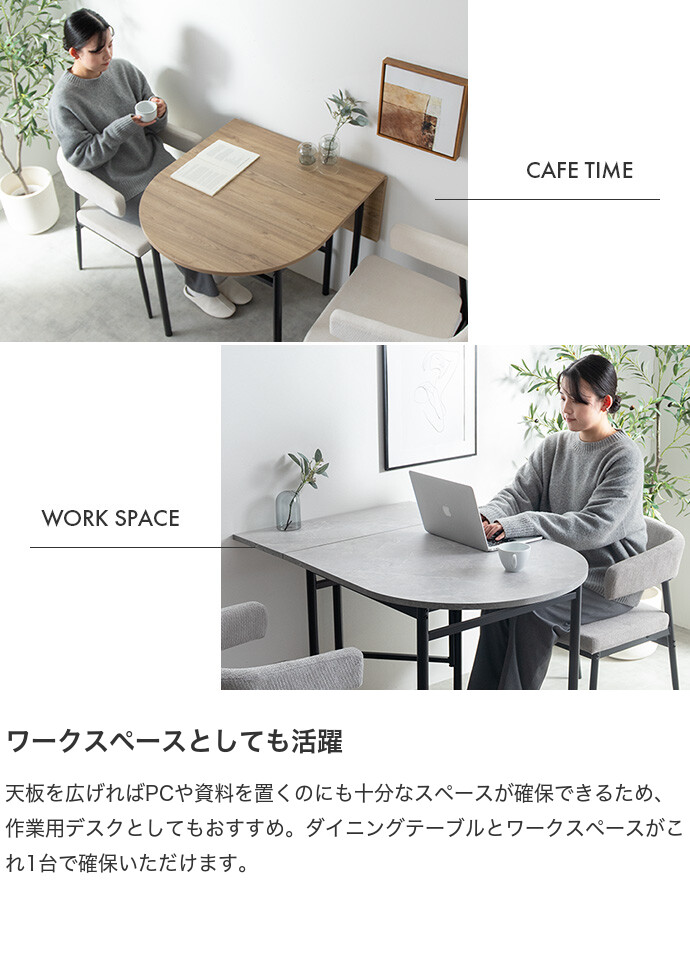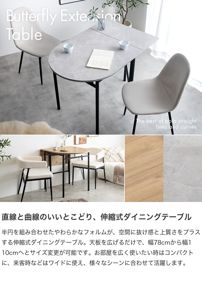 ダイニングテーブル テーブル 机 バタフライ 伸縮 ストーン 石目柄 木製 木目 一人暮らし コンパクト 伸長式 半円 折りたたみ 2人 3人 省スペース 食卓