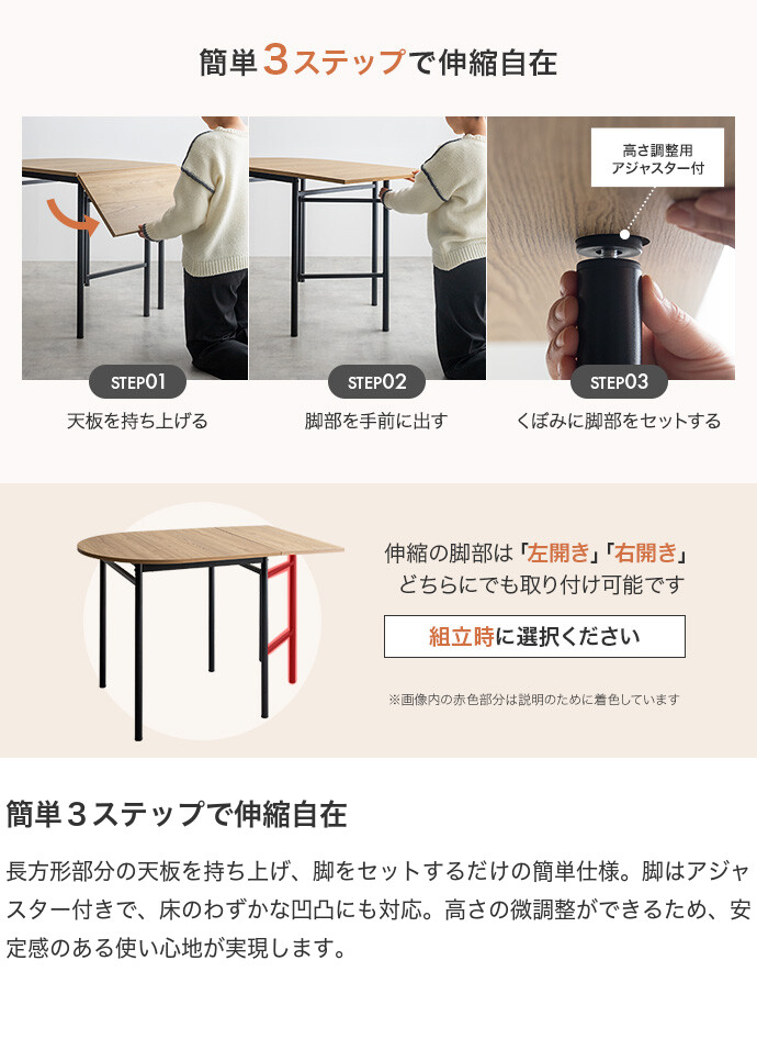 【耐荷重】天板:約40kg、伸長部分:約15kg