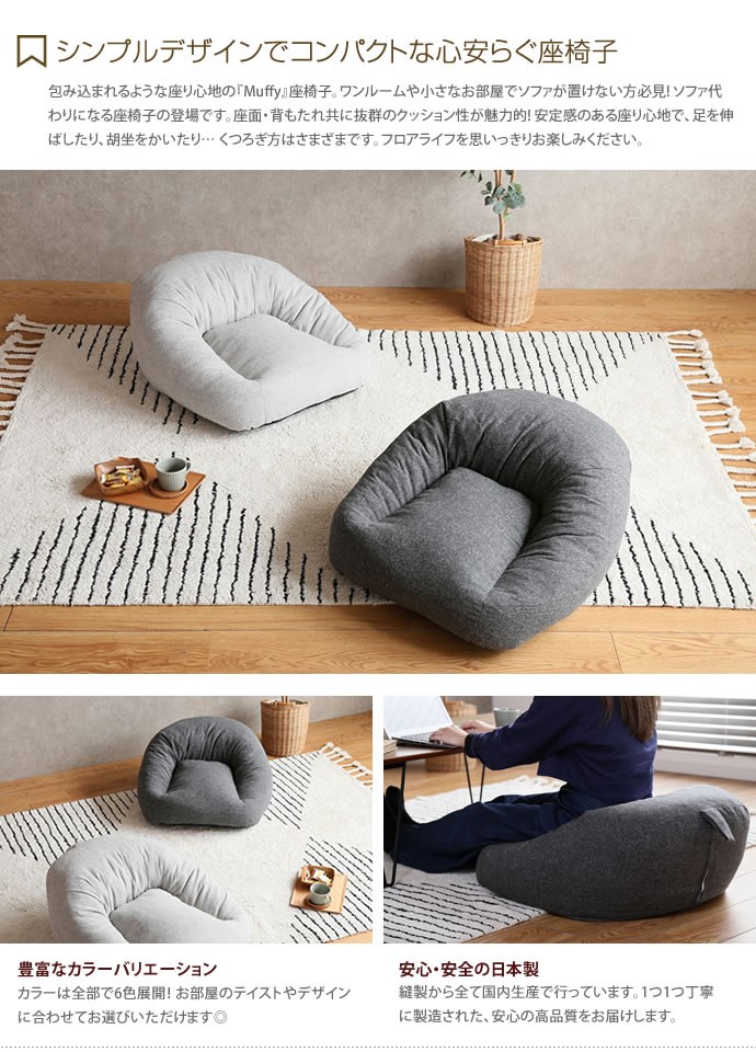 クッション チェア チェアー 椅子 ソファ ソファー 北欧 おしゃれ 一人用 国内産 フロア 丸い リビング コンパクト シンプル 洋室 和室 省スペース