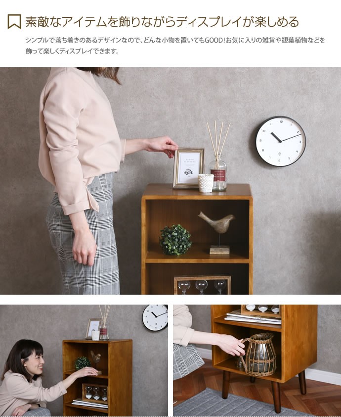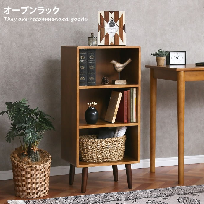幅40cm ラック シェルフ 3段 収納 収納家具 リビング 整理 棚 奥行30cm 木製 北欧 おしゃれ家具 ブラウン 茶 ヴィンテージ 一人暮らし
