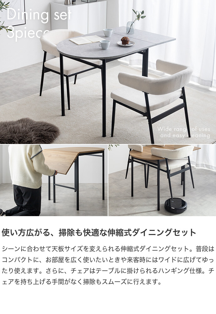 ダイニングセット ダイニングテーブル ダイニングチェア セット 机 椅子 2人掛け 3点セット バタフライ 伸縮 ストーン 木製 木目 一人暮らし コンパクト