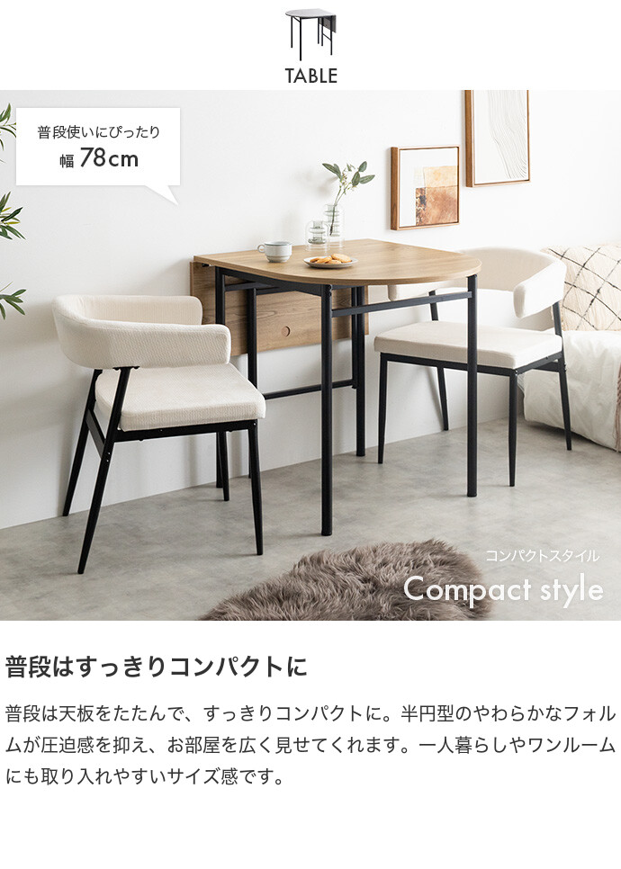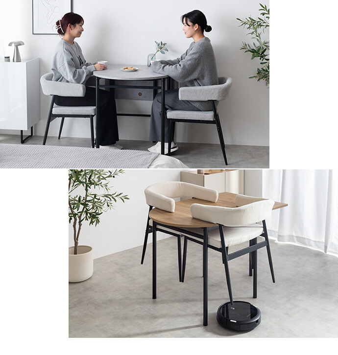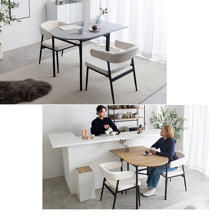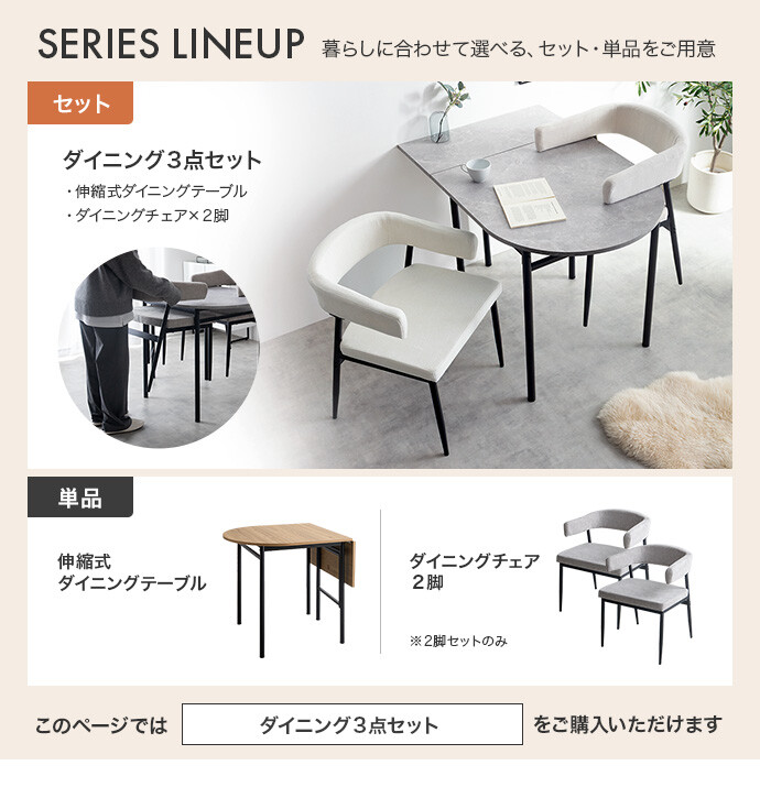 【耐荷重】テーブル:天板 約40kg、伸長部分 約15kg、チェア:約100kg