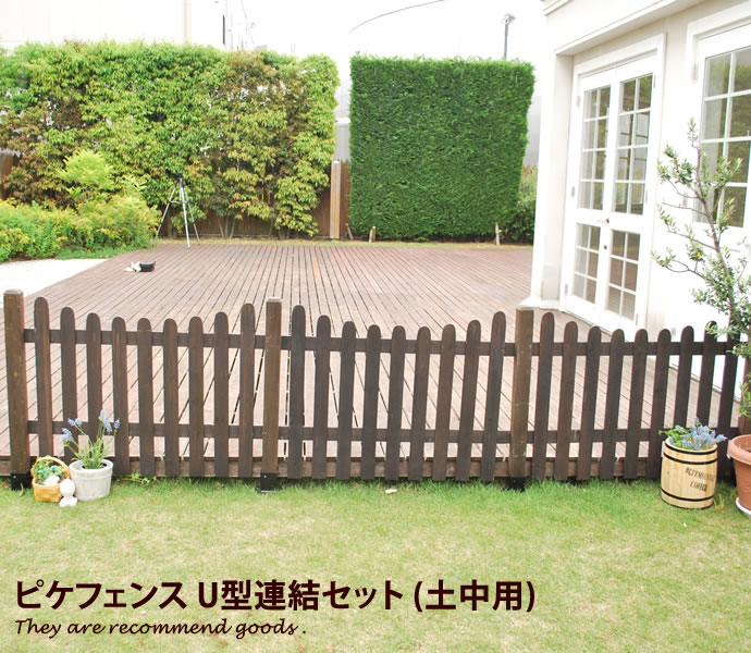 mons ピケットフェンス U字型 土中用 フレンチカントリー フランス プロバンズ風 お洒落 欧米 お庭 ガーデン ダークブラウン ホワイト 天然木 フェンス