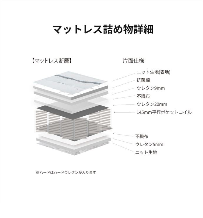 【マットレス】不織布、ウレタン、ポケットコイルスプリング