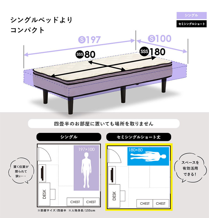 【セミシングルショート】Barges ポケットコイルマットレスベッド