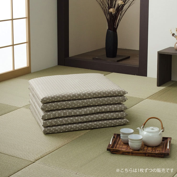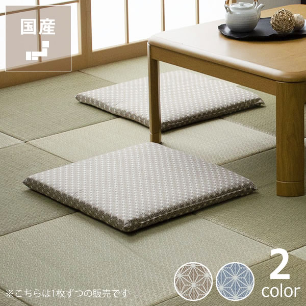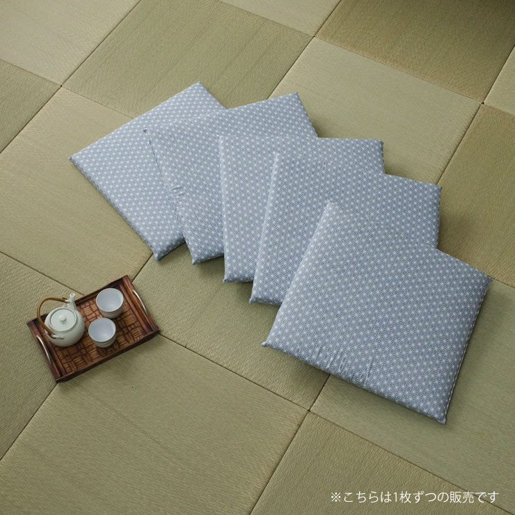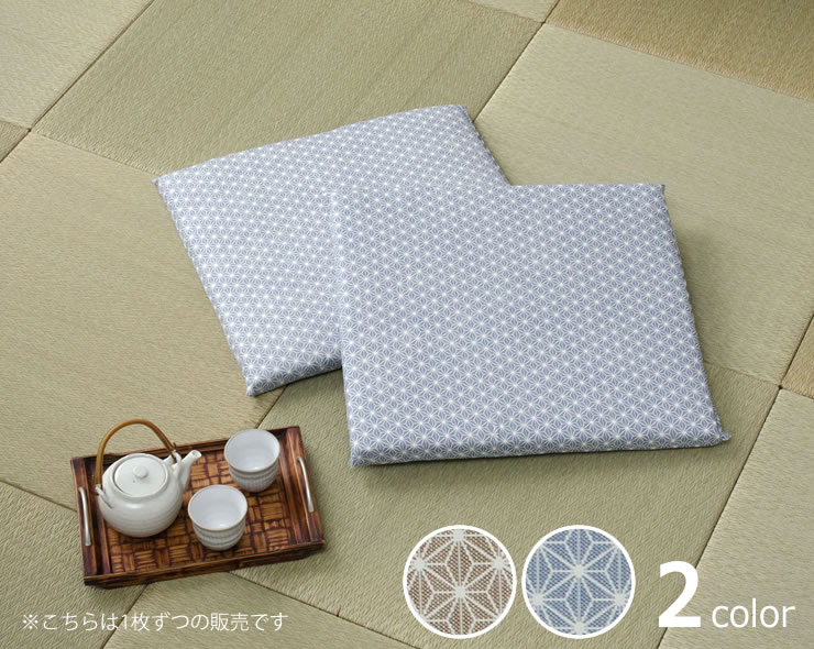 日本の伝統模様で人気の麻の葉柄をモダンな色合いに仕立て上げた座布団。古き良き和の空間をナチュラルに見せる、お洒落な和室にぴったりです。