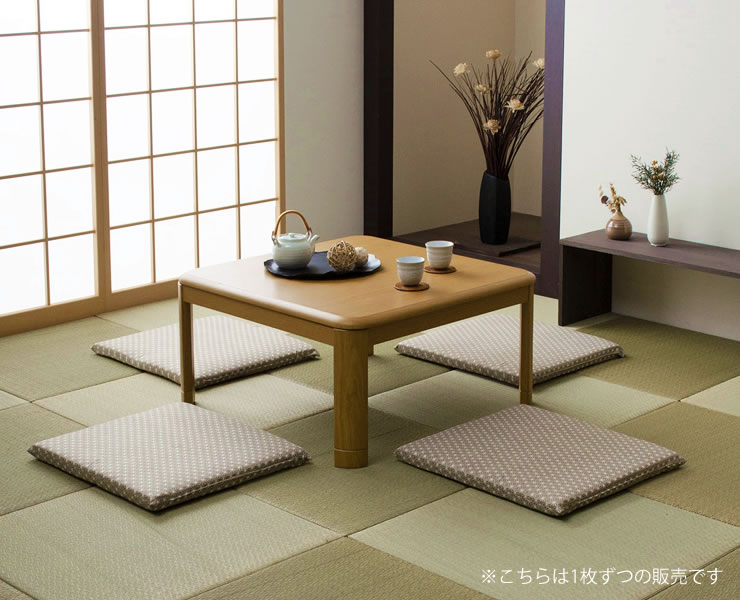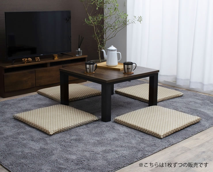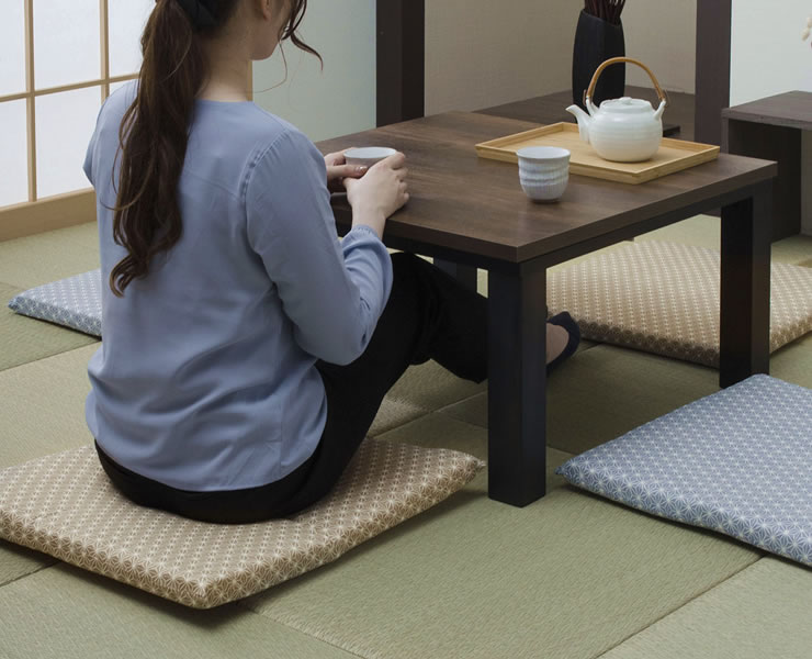 さらりとしたなめらかな肌触りの生地を使用しています。冬にこたつと一緒に、また、夏のリビングの座布団としても、オールシーズン快適にお使いいただけます。
