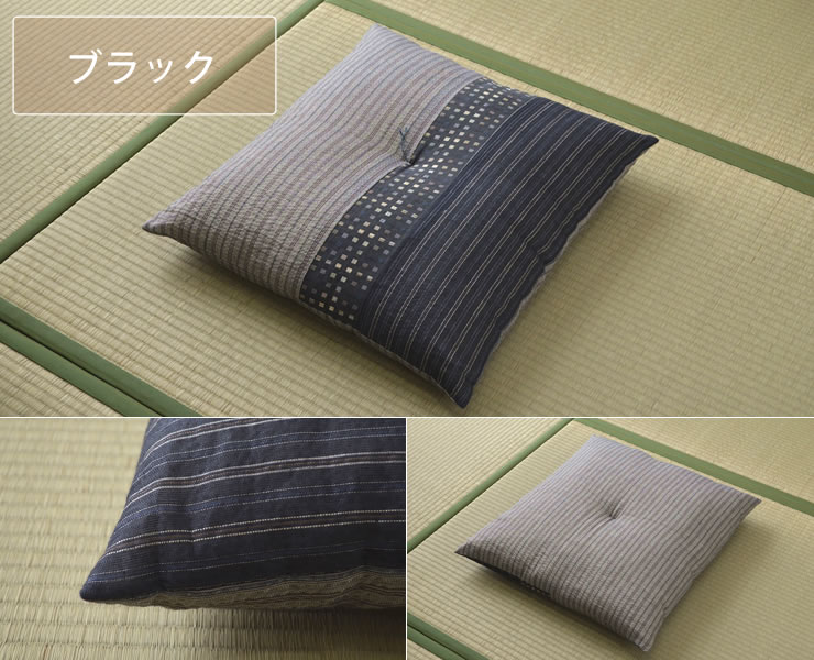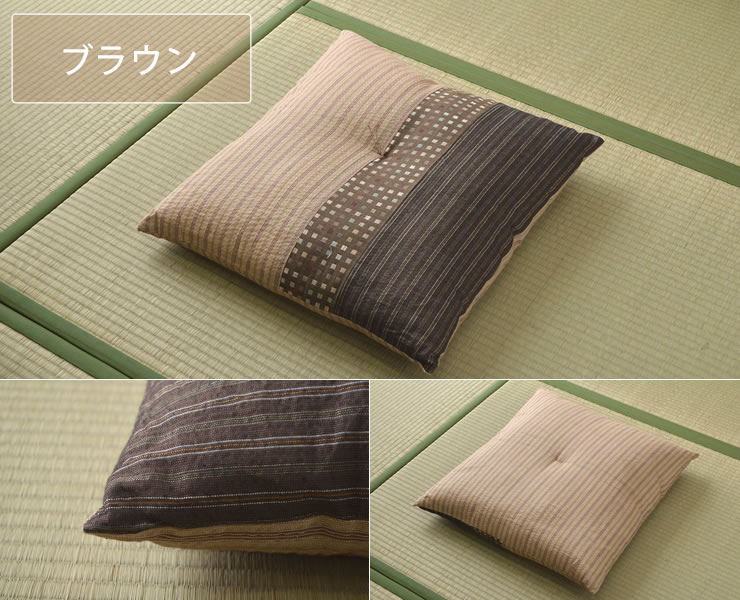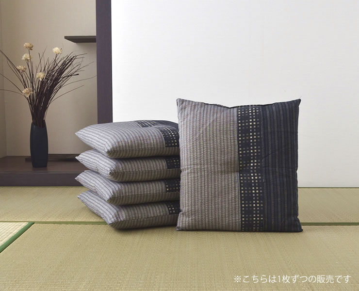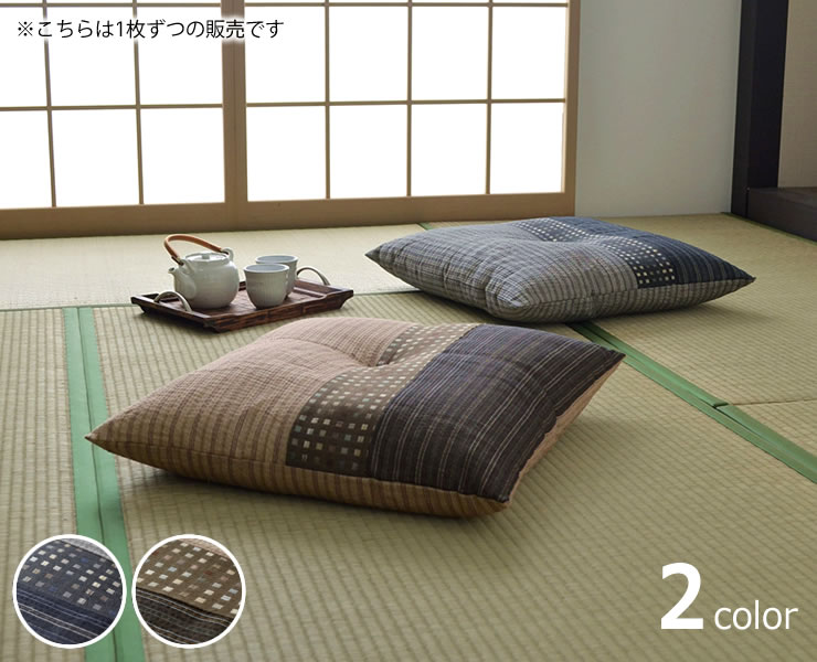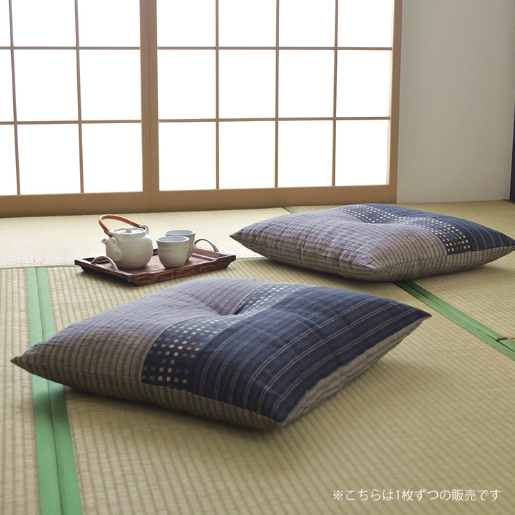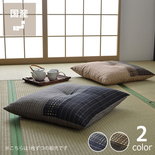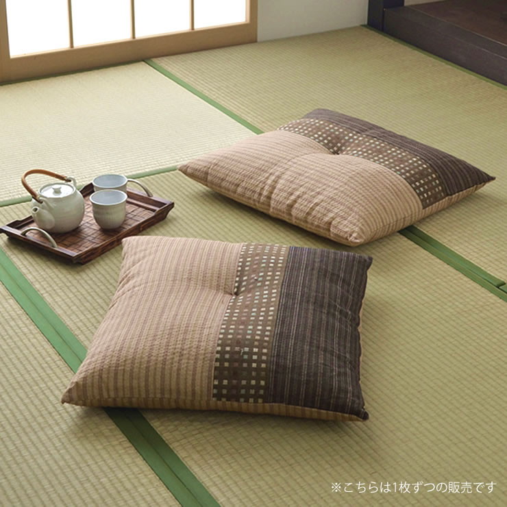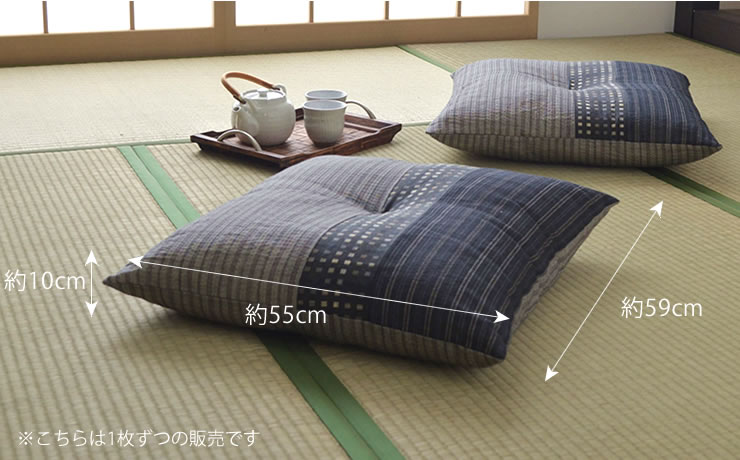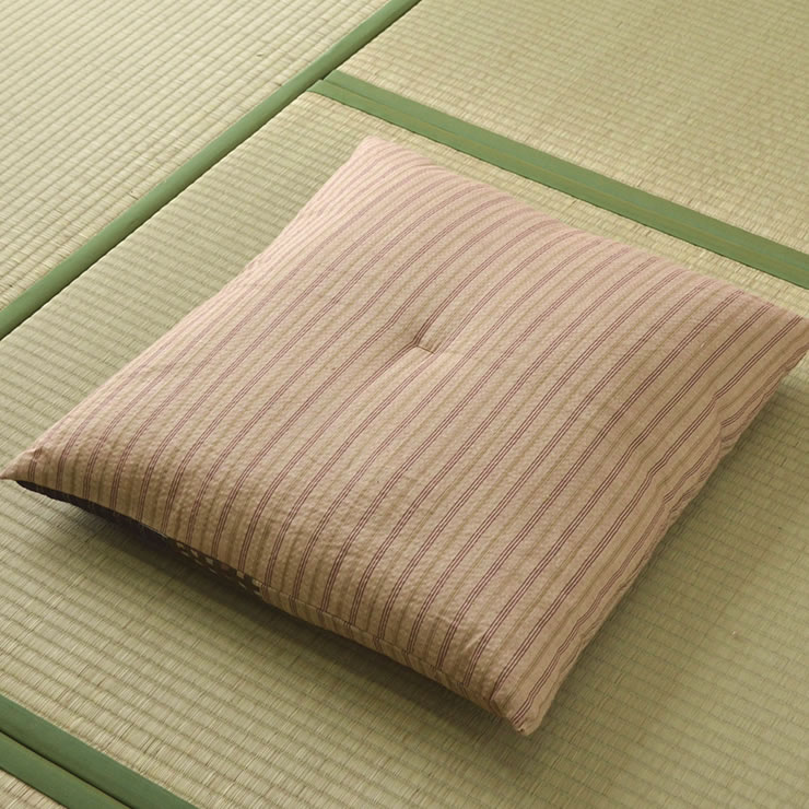 日本工業規格(JIS)で「Mサイズ」と定められている、横55cm×縦59cmの銘仙判の座布団です。家庭用としてもっとも多く流通しているサイズなので、座布団カバーの種類が豊富です。