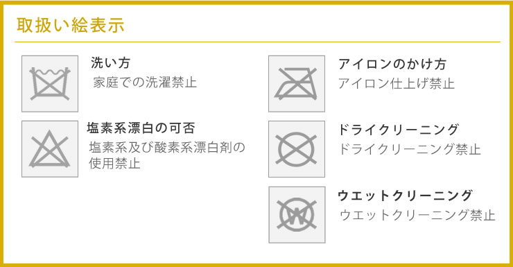 ・お手入れは品質表示にしたがって行ってください。誤ったお手入れは、品質の低下や破損の原因となります