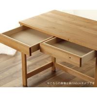 天板下には2杯の引き出しが付いていて、作業途中のノートやファイル、鉛筆や消しゴムなどの小物類の収納にも便利です。右側引き出しは鍵付き。