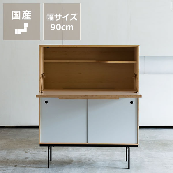 子供部屋の学習机として、リビング用のデスクとして、そして、ディスプレイが楽しめるキャビネットとして。いつまでも家族のそばに寄りそえる形のライティングビューローです。