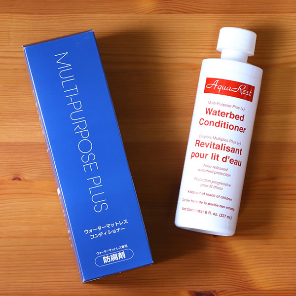 ウォーターベッドは1年に1回だけ、簡単なメンテナンスが必要です。それは、ウォーターバッグの中に防腐剤を注入すること。そのひと手間を行うことで、水を清潔に保つのはもちろん、ウォーターバッグを内側から保護します。