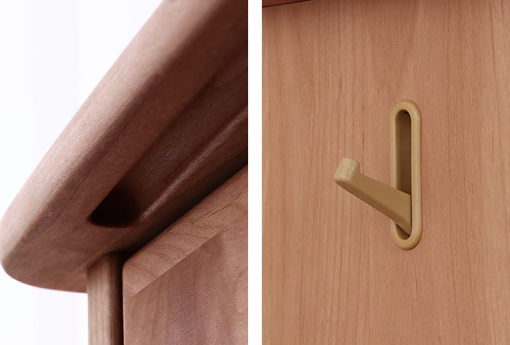 丸みのある優しい雰囲気が子ども部屋にもぴったり。また、角が丸いことで不意のケガ等を防ぎやすく、お子さまも安心してお使いいただけます。