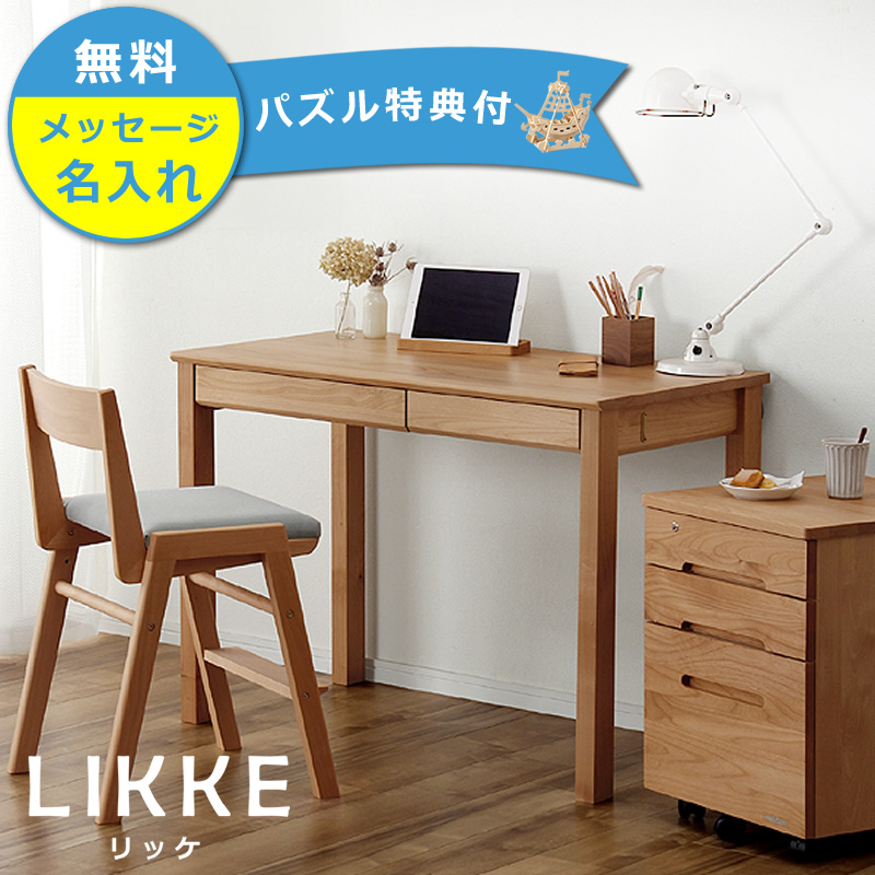 LIKKEデスクシリーズは、インテリアになじむ上質なデザインと国産の確かなつくりで、お子さまの成長はもちろん、大人の書斎机としても長く愛用いただける当店おすすめ商品です。豊富なシリーズ展開で、ご家庭それぞれの学習シーンに最適な組み合わせをお選びいただけます。