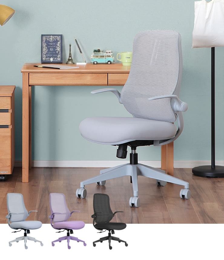 生地・フレーム・キャスターにいたるまで、ワンカラーで統一されたインテリア性の高いデザインが特徴のミドルバック学習椅子。