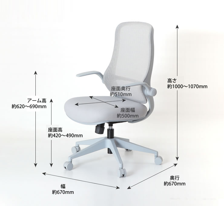 | サイズ | 幅670×奥670×高1000〜1070(mm) 座面高:420〜490(mm) |