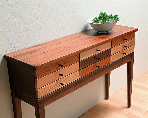 | 材質 | 天板・脚:無垢材(ウォールナット) 前板:無垢材(9素材/ブラックチェリー・ウォールナット・ハードメープル・ビーチ・アルダー・レッドオーク・タモ・楠・チーク) 外装:突板(ウォールナット) |
