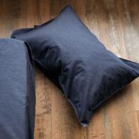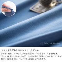 タテ糸に色糸、ヨコ糸に白糸を使ったファブリックをデニムと呼びます。ジーンズに使われるハードなデニムよりも細め(30番)の糸を使いソフトな肌ざわりに仕上げた、ベッドリネンに適したデニムです。