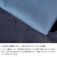 ツイル(綾織り)は、生地表面に斜めのラインが現れる織り方のことを言います。なめらかな肌ざわりと光沢感が魅力です。平織りよりもシワになりにくいと言われています。