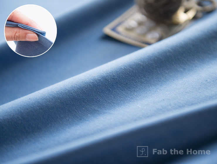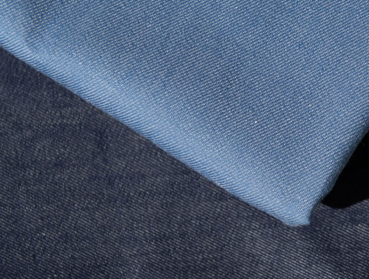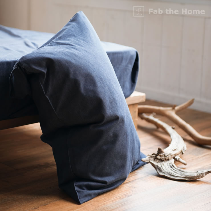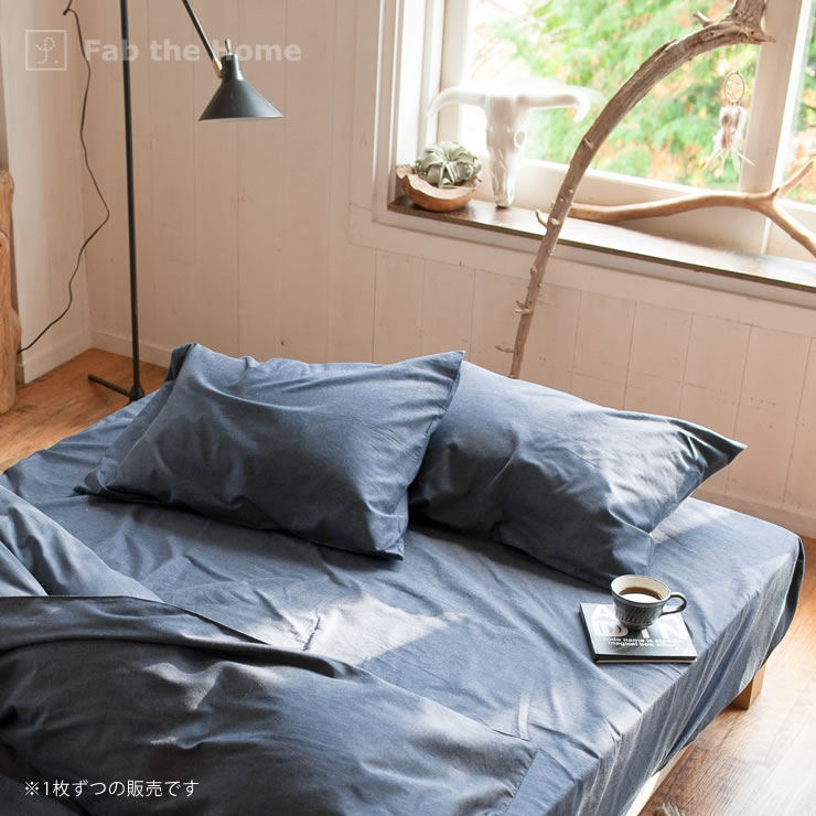 タテ糸に色糸、ヨコ糸に白糸を使ったファブリックをデニムと呼びます。ジーンズに使われるハードなデニムよりも細め(30番)の糸を使いソフトな肌ざわりに仕上げた、ベッドリネンに適したデニムです。