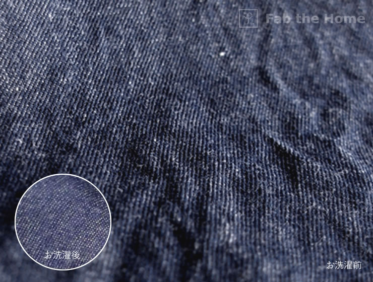 ジーンズに使われるハードなデニムよりも細め(30番)の糸を使い、ソフトな肌ざわりに仕上げたデニムです。インディゴ染めのデニムよりも、ご使用・お洗濯時に色落ちしにくい染料を使っています。