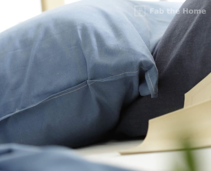 袋状に縫い合わせたシンプルな仕様です。枕カバーの奥までキッチリと中身を入れて、中身の大きさに合わせて余った部分を折り込んでください。